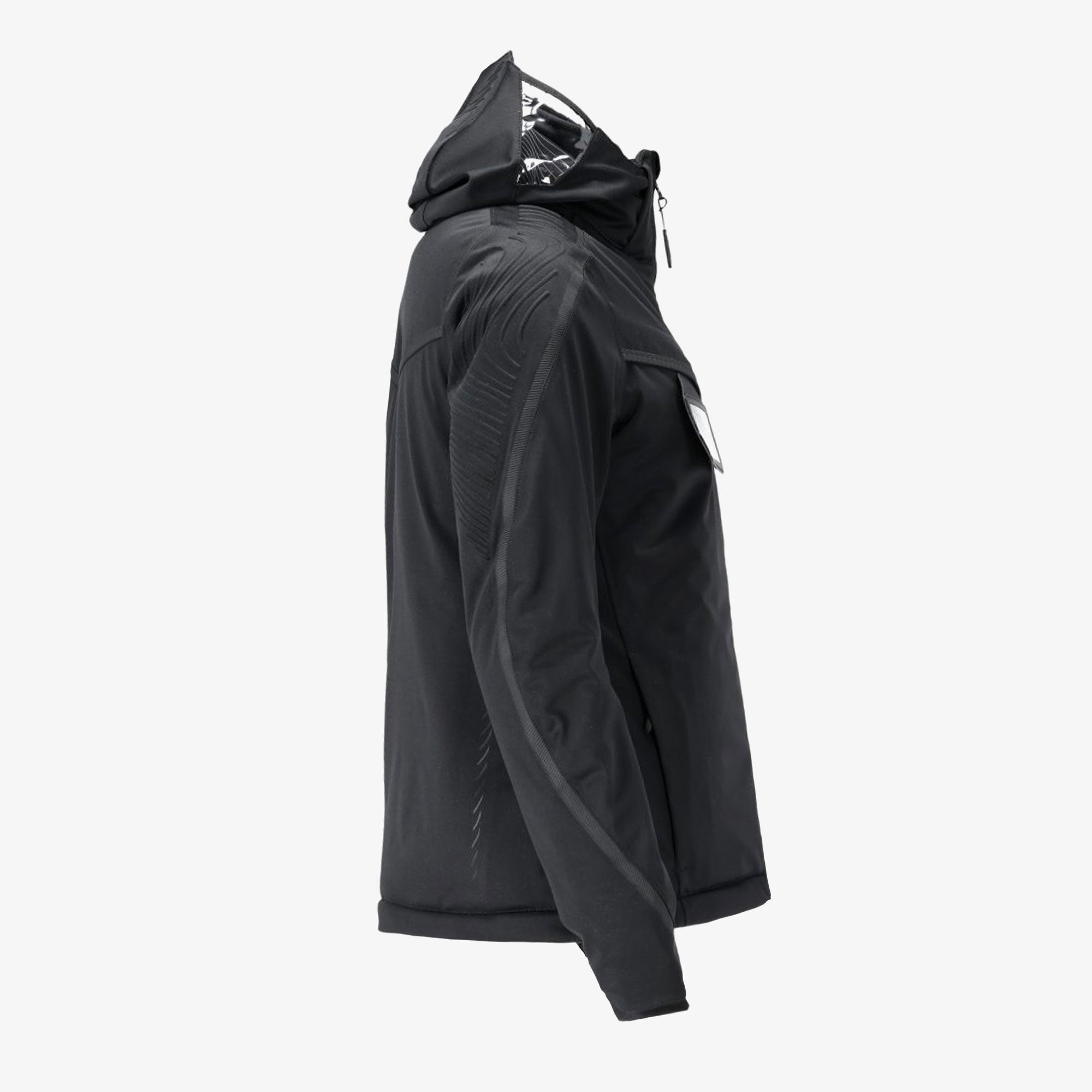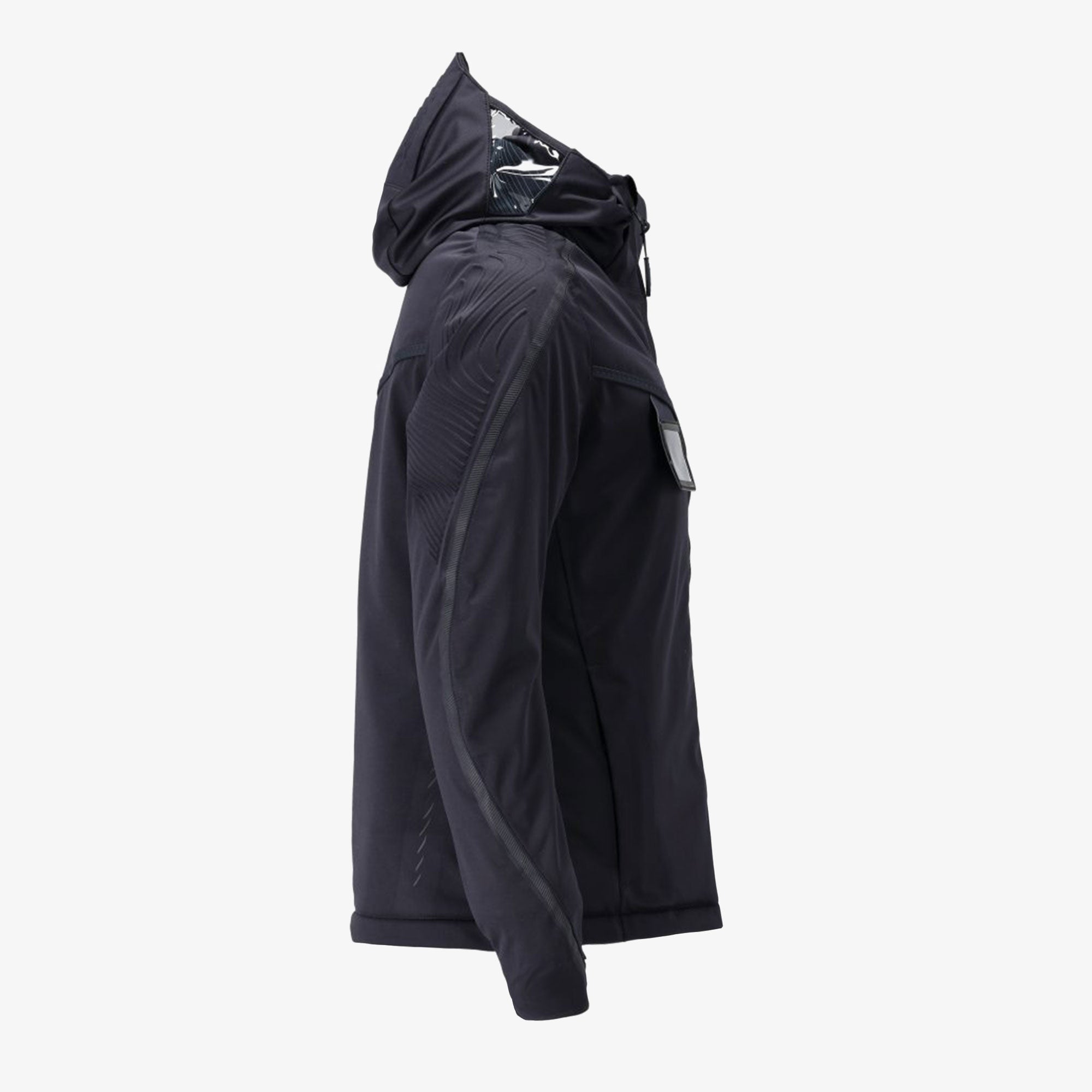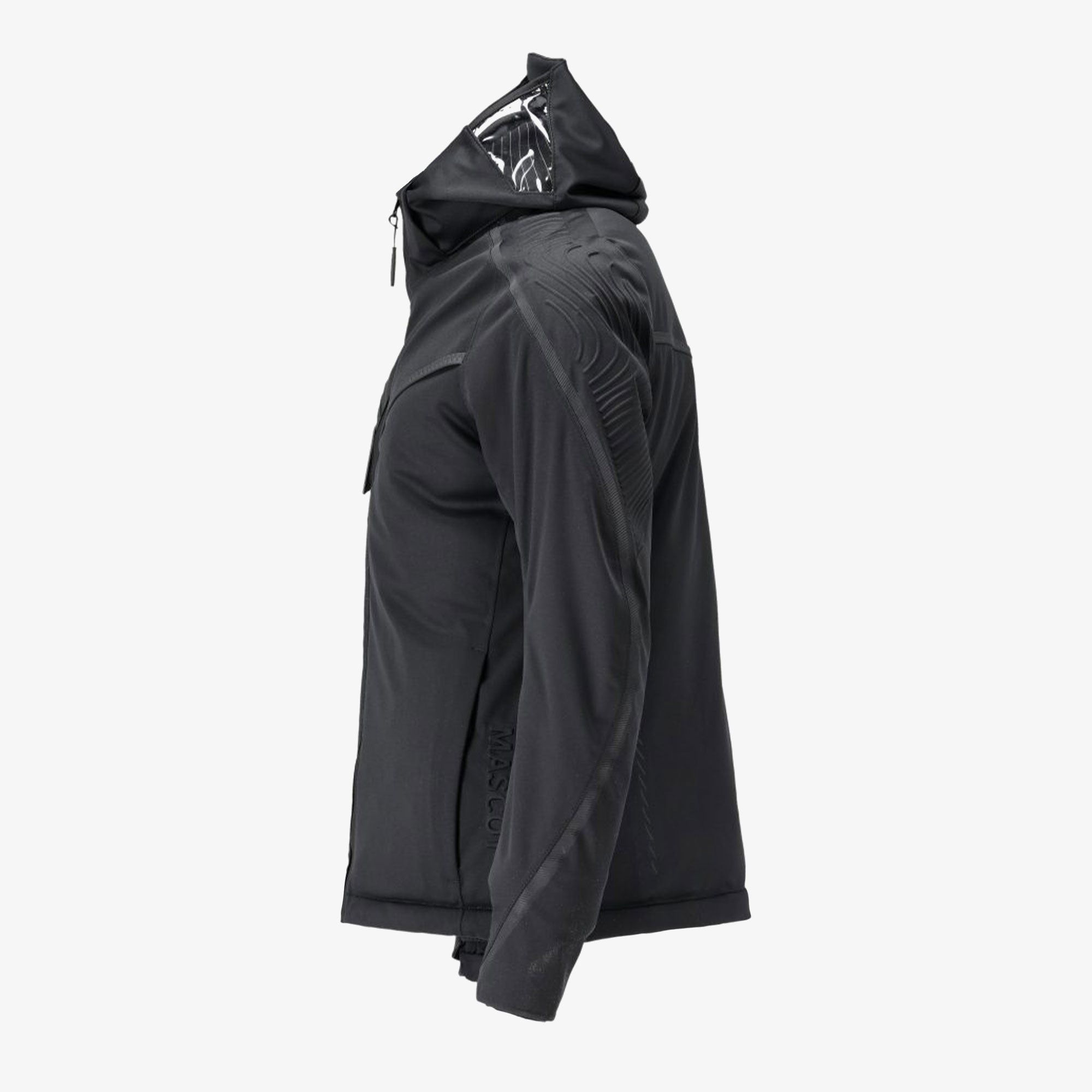 - Enganliegende Kapuze mit transparenten Seiten für bessere Sicht.