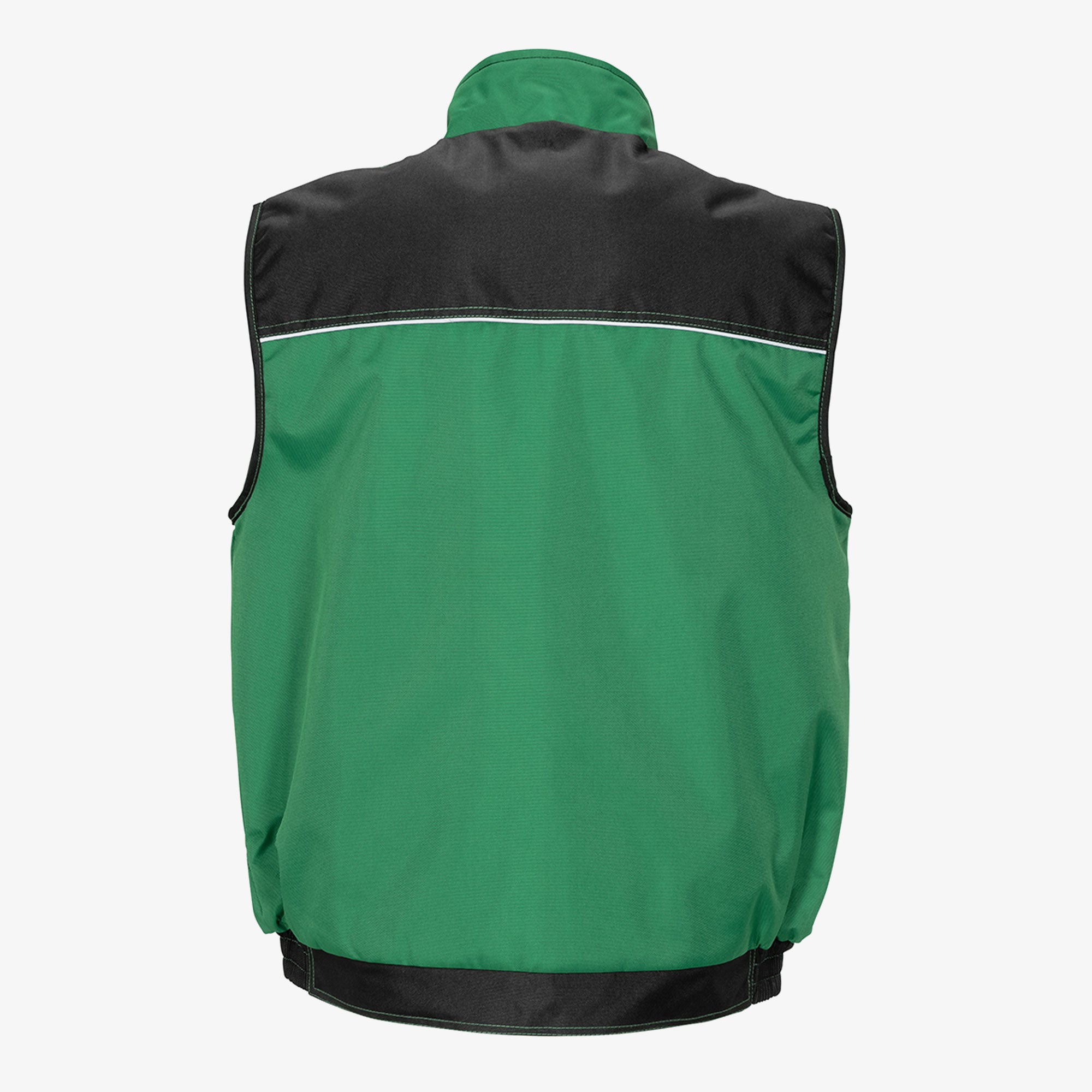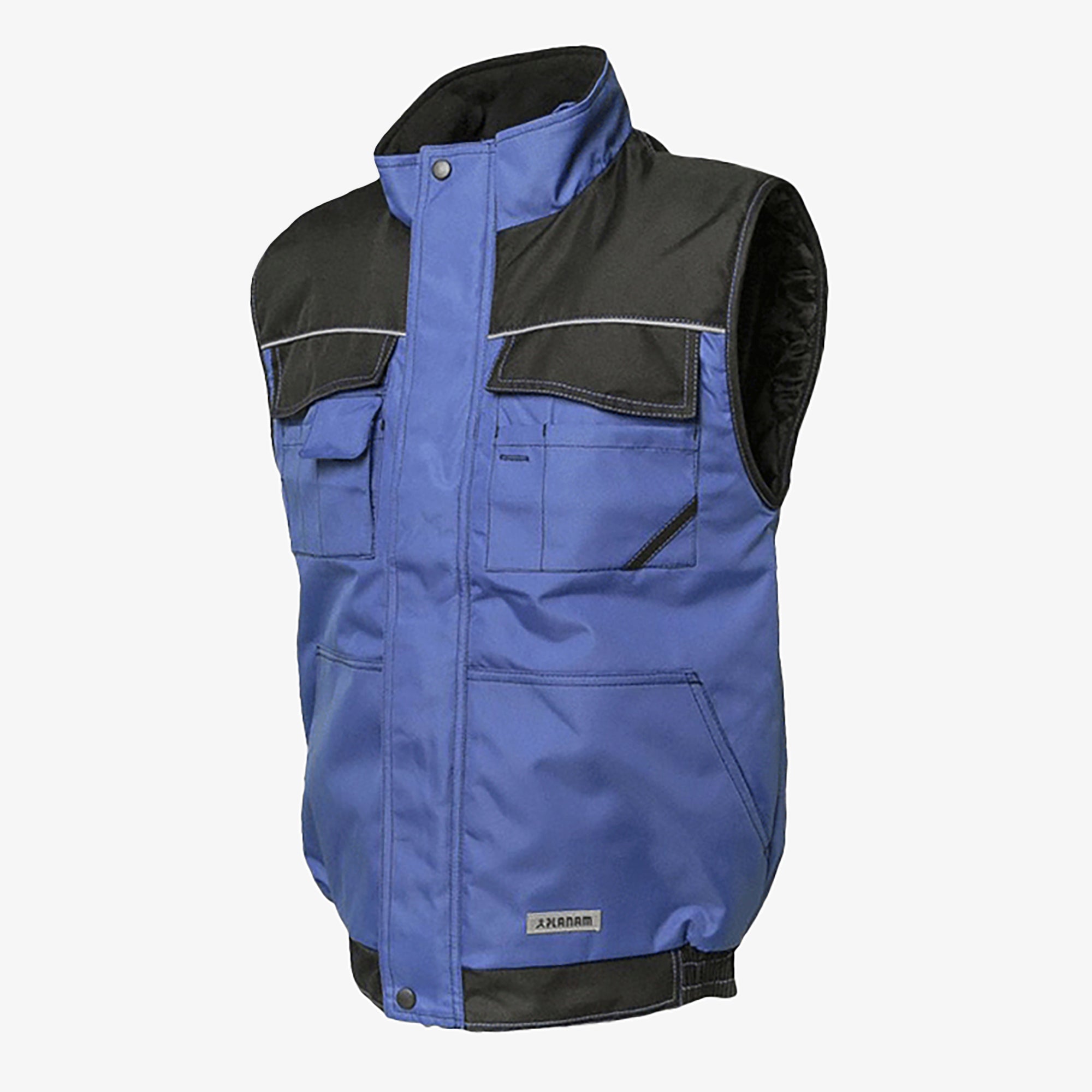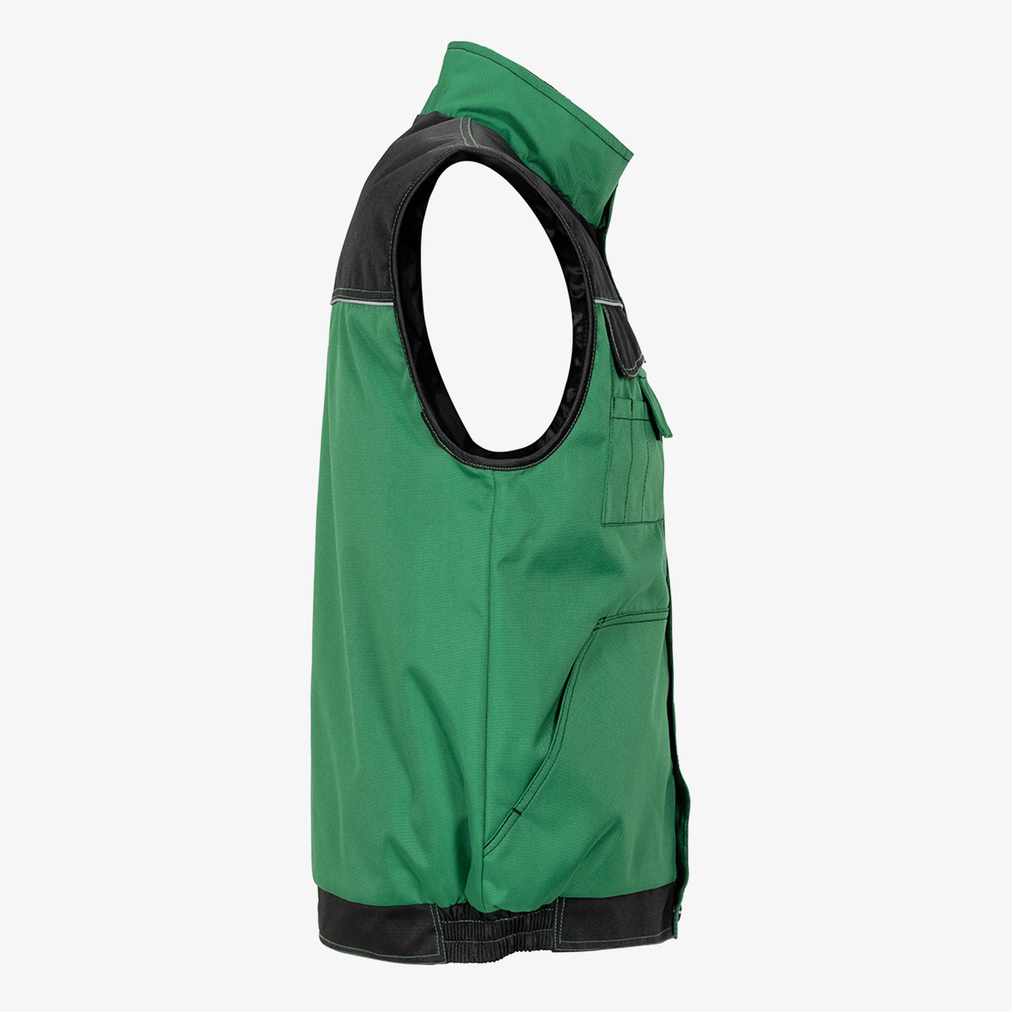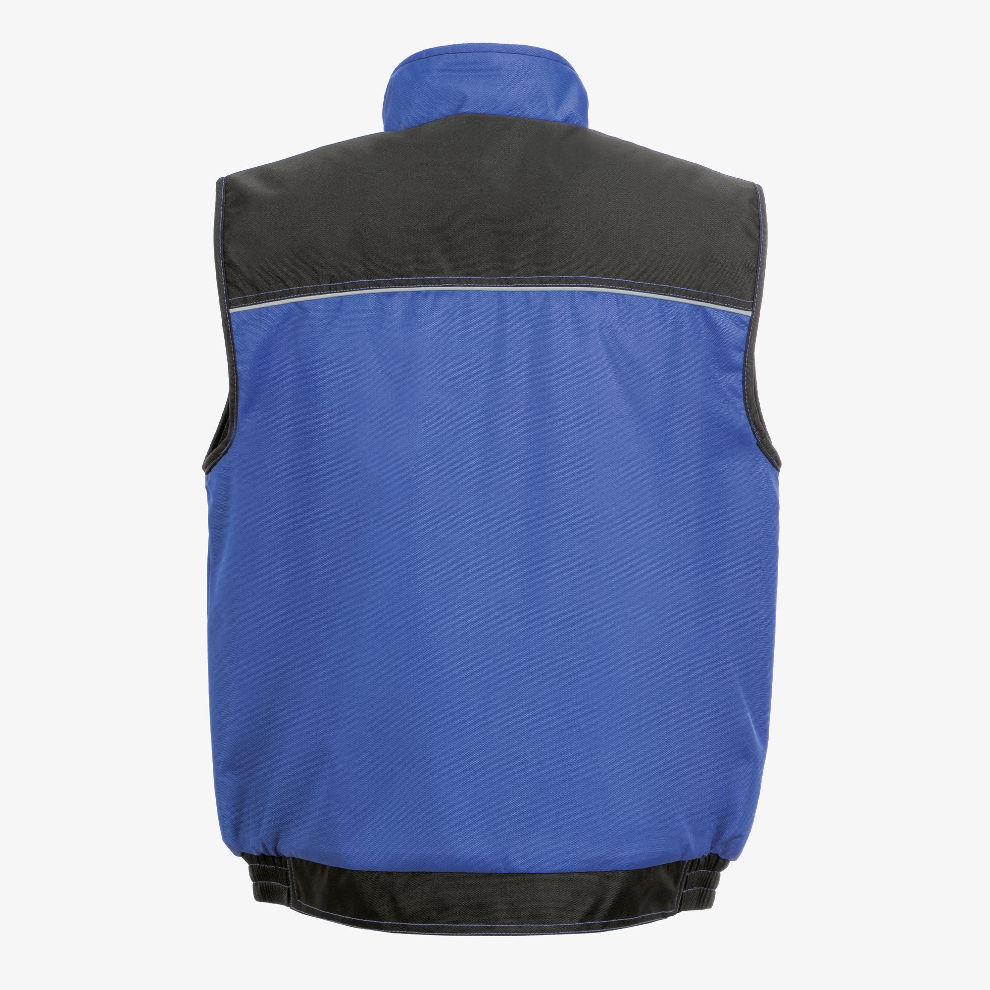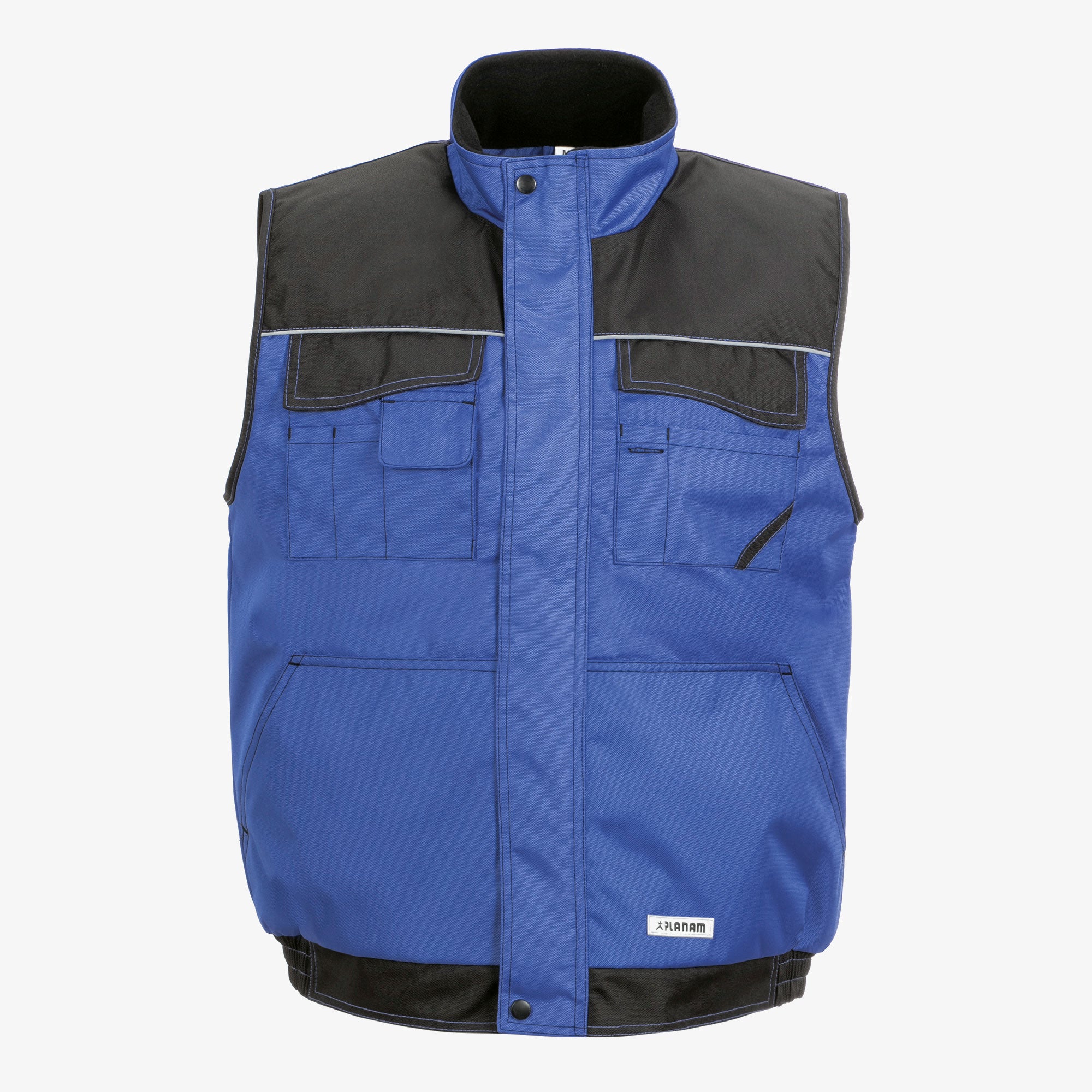 A robust weather vest for any working environment, waterproof outer material with PU coating, two-tone, reflective parts on the chest, arms and back ensure good visibility of the user, 2 chest pockets with practical sub-types, mobile phone pocket, 2 side pockets with diagonal access, hidden front cif, quilted Taft lining.